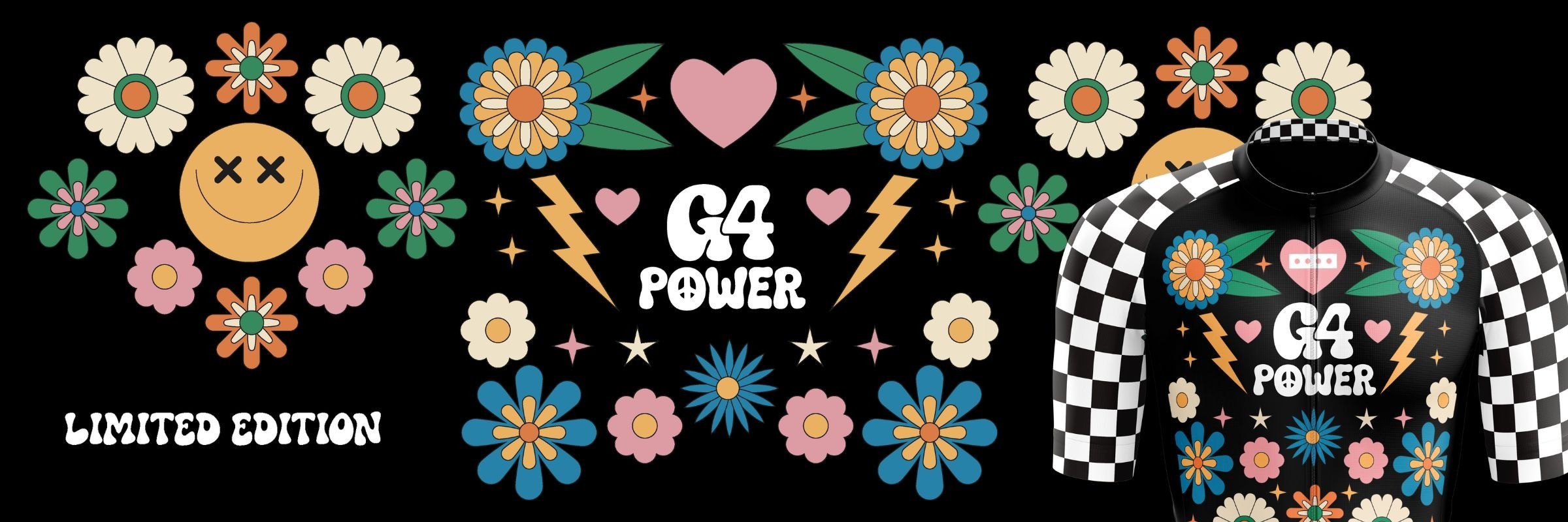 La collection G4 Power puise son inspiration dans l’énergie des années 60 et 70, où le mouvement hippie prônait la liberté, la paix et l’amour universel. Les motifs et couleurs rappellent cette époque iconique où le flower power et les psychédélismes envahissaient les rues et les festivals, célébrant la créativité et l’exubérance et le fun